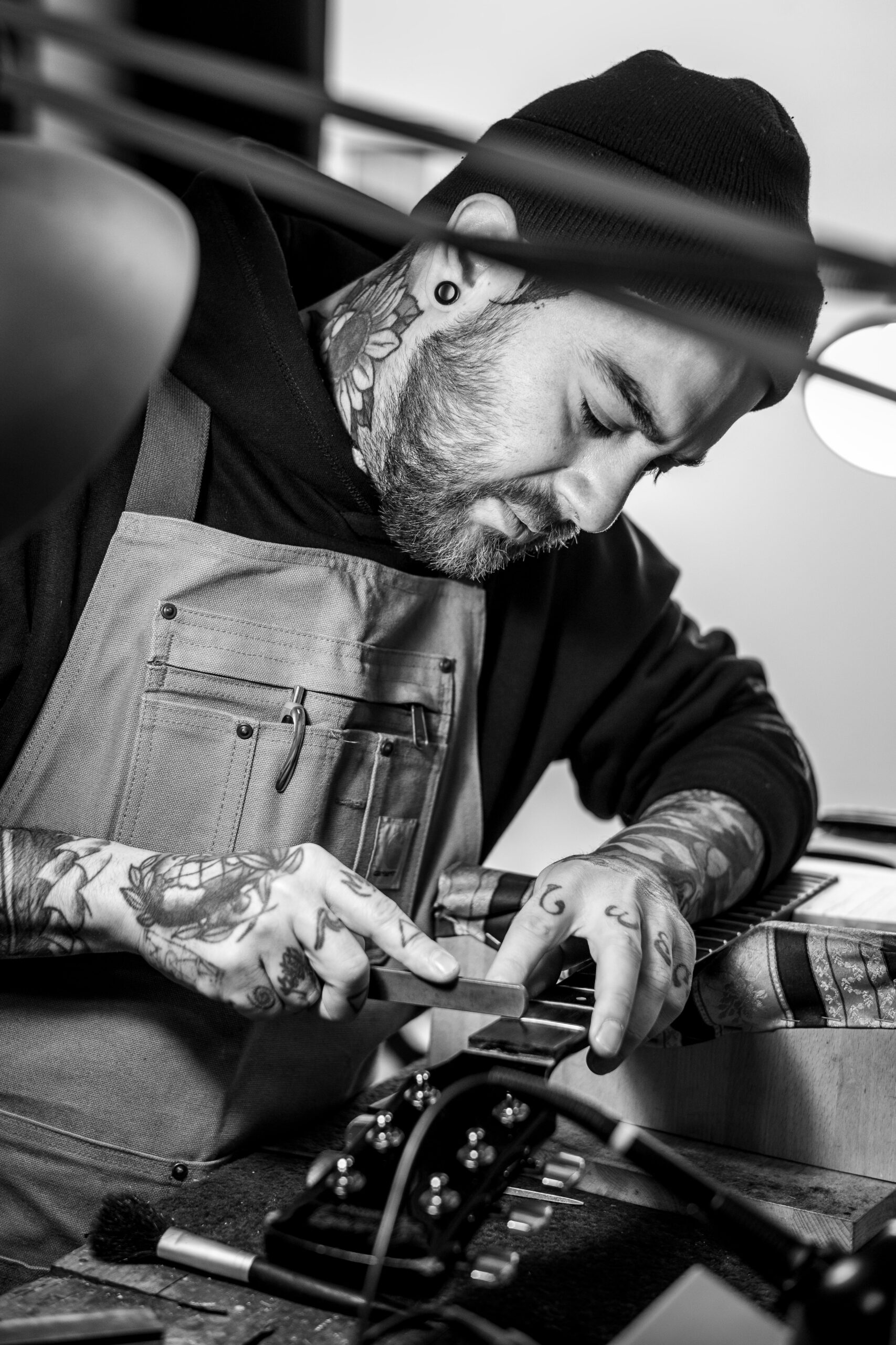 Ich arbeite nicht mehr alleine im Shop, sondern habe mittlerweile zwei festangestellte Mitarbeiter: Jappo & Till. Ich arbeite lieber im Team und bin der festen Überzeugung, dass dieses Handwerk nur so zukunftsträchtig und nachhaltig gestaltet werden kann. Wir können somit besser Kompetenzen untereinander aufteilen und die ca. 900 Instrumente pro besser und schneller bearbeiten. Falls ich also nicht selber am Telefon sein sollte, erschreck dich bitte nicht. Auch bei der Terminvergabe, bzw. An- und Abnahme des Instrumentes bin nicht immer persönlich vor Ort. Da der Shop aber relativ klein ist, höre ich aber eh immer alles mit.